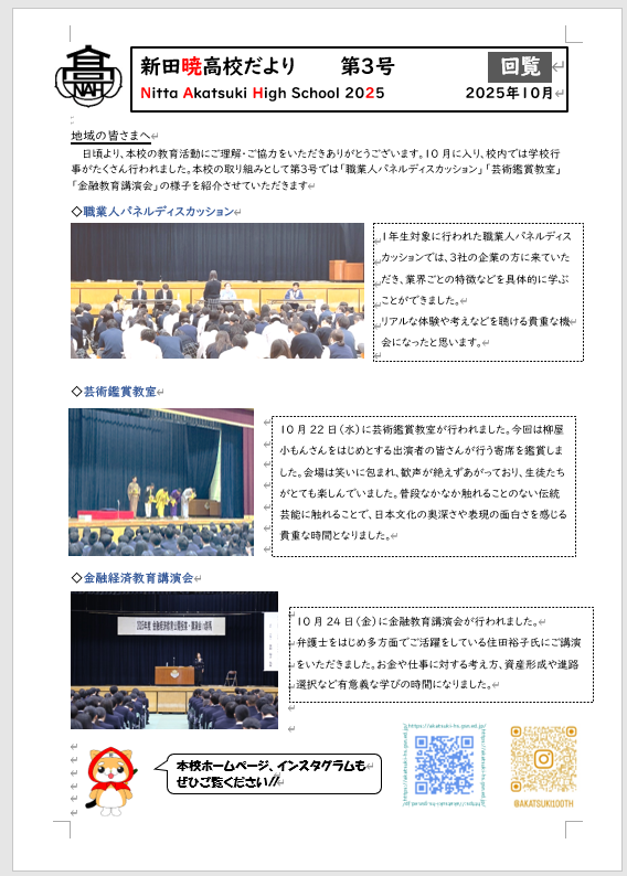 ★2025年度金融経済教育講演会in群馬について(保護者観覧のお知らせ)★